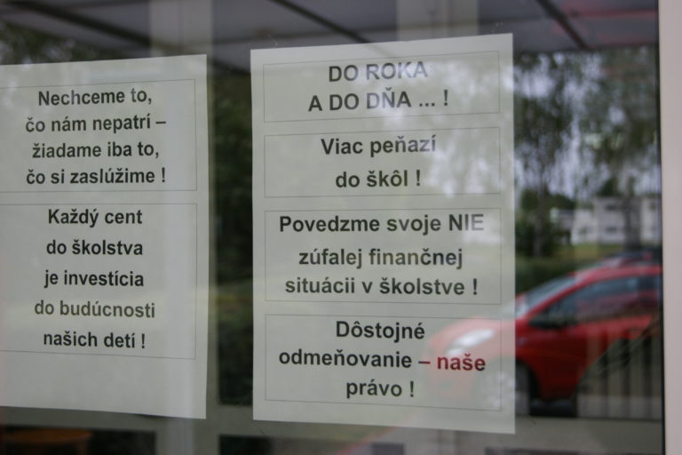 Na Základnej škole(ZŠ) sme minulý týždeň vo štvrtok zastihli predsedu okresnej rady Odborového zväzu pracovníkov školstva a vedy na Slovensku Igora Číža. Ten priebežne sledoval prichádzajúce informácie od štrajkujúcich kolegov. „Sme navzájom prepojení, učiteľov nechávame doma. Neťaháme ich do Bratislavy, veď majú toho všetkého plné zuby,“ podotkol. Časť zamestnancov škôl nechcela protestovať len za zatvorenými dverami a chcela sa stretnúť na dohodnutom mieste v Piešťanoch. Podľa I. Číža však nepokladali za dôstojné stretnúť sa na Námestí slobody, kde práve prebiehal pivný festival a ani pre radnicou, pretože „náš štrajk nie je zameraný proti samosprávam.“