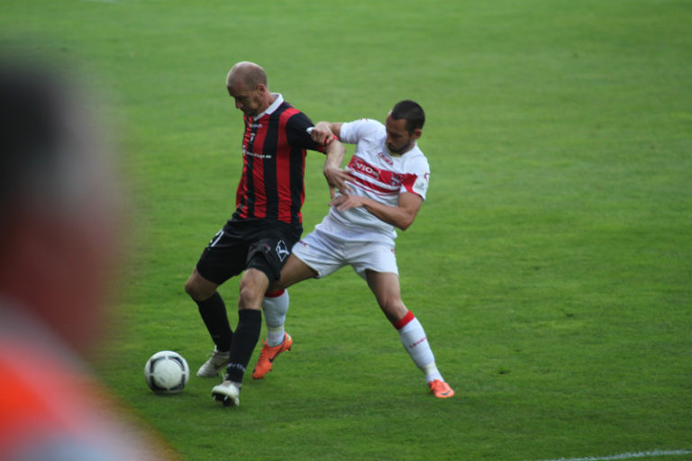 V 10. min preletela typická delovka Kladrubského ponad bránku Rusova, vzápätí hrozilo nebezpečie v pokutovom území domácich po prieniku Saba. O desať minút neskôr minul krížnu prihrávku Vlaska pred bránkou Schranz a v sieti neskončila lopta ani po akcii tandemu Ledesma – Halenár. Po polhodine hry sa do svojej prvej gólovej šance dostal Ledesma, ale po šprinte mu chýbali sily na presné zakončenie. Minútu pred odchodom do šatní zneškodnil prízemnú strelu Halenára istý Rusov.