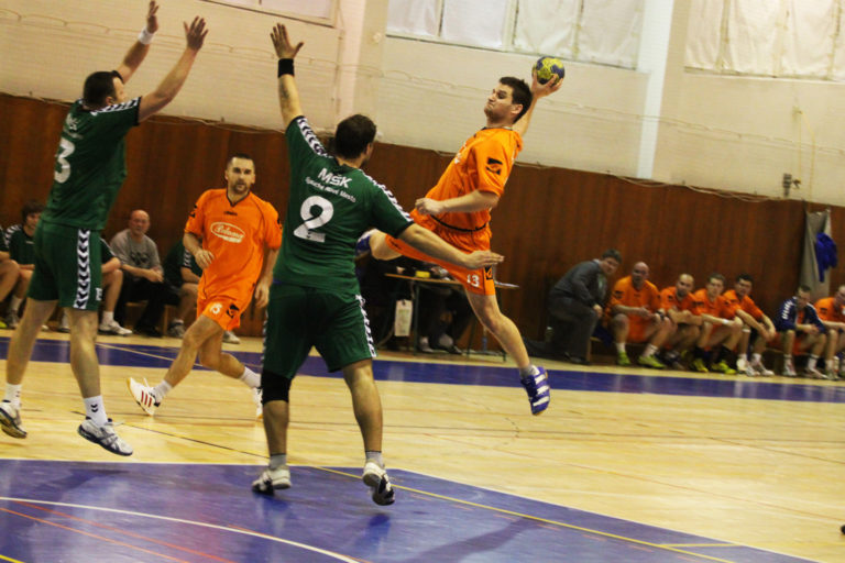 Domáci hráči nastúpili aj s viacerými novými hráčmi – Krškom, Bečkom a Hrdým. Hneď od začiatku trpezlivo bránili a vyrážali do rýchlych protiútokov zakončovaným Varačkom a Bolješikom. V hre na postavenú obranu hrali kombinačne dirigovaní Fedorom a zakončovali z dobre pripravených šancí. Aj keď nepremenili všetky strelecké pokusy skoré narastalo postupne v prospech MHK Piešťany. V šiestej minúte zvyšoval Bolješik na 4:0 a o štyri minúty skóroval Varačka – 8:3. V 20. min mali už Piešťanci desaťgólový náskok – 15:5. V poslednej desaťminútovke došlo k prestriedaniu v domácej zostave, čo využili hostia na zníženie stavu na polčasových 21:14. V prvom dejstve sa strelecky presadzovali najmä Bolješik, Fedora, Borek a Varačka.