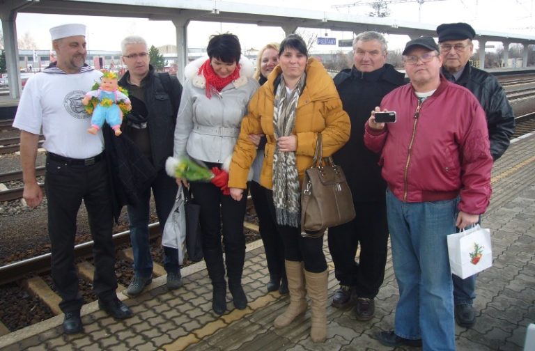 Na stanici v Piešťanoch vítali veselú spoločnosť zástupcovia občianskeho združenia ČANGO a Českého spolku v Piešťanoch.