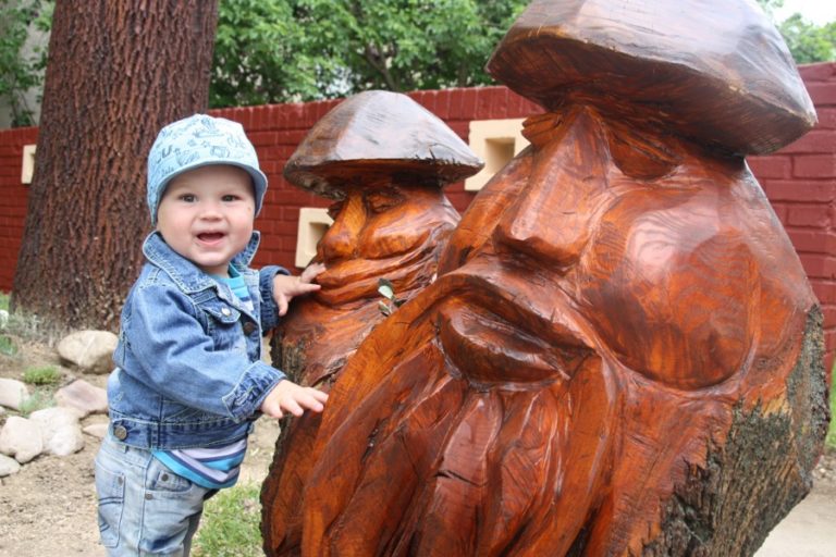 V susedstve budovy Mestského kultúrneho strediska vyrástli dva obrovské dubáky a v dutine vypíleného jaseňa vytŕča mláďa sovičky. Nad ním bdie jeho mama – múdra stará sova. To všetko je z dreva. Sochy vytvoril rezbár Jozef Chromek z Podolia.