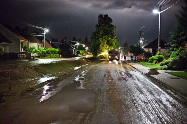 ŠÍPKOVÉ- Utorkový večer bol pre obyvateľov Šípkového rušný. Približne o siedmej hodine večer sa obcou prehnala silná búrka s prívalovým daždom a krupobitím. Miestny potok nezvládol nápor vody a vylial sa na okolitú ulicu. Podľa miestnych obyvateľov, voda prišla veľmi rýchlo a mohli sa už len pozerať.