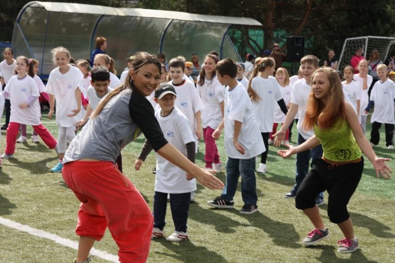 Na umelom trávniku futbalového štadióna v Piešťanoch v stredu 29. mája tancovalo asi tristo detí zumbu, o kúsok ďalej skákali školáci na športových trampolínach a tí, ktorým sa nechcelo vrtieť zadkom, mávať rukami a podskakovať, hrali futbal. Vynikajúcu atmosféru plnú zdravého pohybu a hudby zabezpečili skúsené inštruktorky zumby Katarína Augustineková, Marcela Šimonová a jumping mixovala Radka Dorošová z fitness centrum SiTy Piešťany. Podujatie, ktoré režírovalo Mestské kultúrne stredisko v Piešťanoch spestril aj prílet vrtuľníka, takže deti si mohli s vypnutými motormi aj zakrútiť „volantom“ helikoptéry.