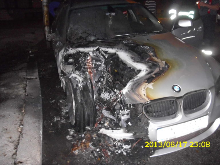 Po príchode na miesto pred prevádzkou Diego policajti spozorovali horiace auto značky BMW. Plamene zachvátili prednú pneumatiku a časť kapoty. Hliadka sa za použitia hasiaceho prístroja zo služobného vozidla snažila požiar uhasiť. Následne bol telefonicky vyrozumela dispečera HaZZ Piešťany, ktorý na Vajanského ulicu vyslal zásahovú jednotku a tej sa podarilo požiar uhasiť. Na miesto prišla aj hliadka obvodného oddelenia PZ v Piešťanoch, ktorá si prípad prevzala.