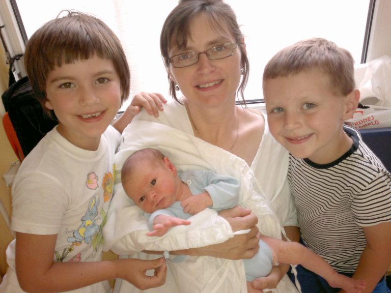 Rodine Evy a Štefana Kováčovcov z Piešťan sa v stredu 10. júla o 8.38 h narodilo piate dieťatko, syn Dávid Peter. Dcéra Juditka (6) – vľavo a syn Samko (4) – vpravo sa tešia z bračeka. Evička je rada, že „prežila“ štvrtý cisársky rez a zotavuje sa. Doma na súrodenca čakali sestry Sárka (11) a Miriam (2). Srdečne blahoželáme!