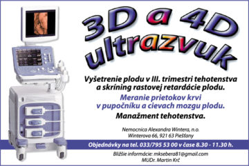 V Nemocnici A. Wintera v Piešťanoch vykonáva MUDr. Martin Krč vyšetrenie 3D a 4D ultrazvukom. Touto metódou je možné vyšetriť…
