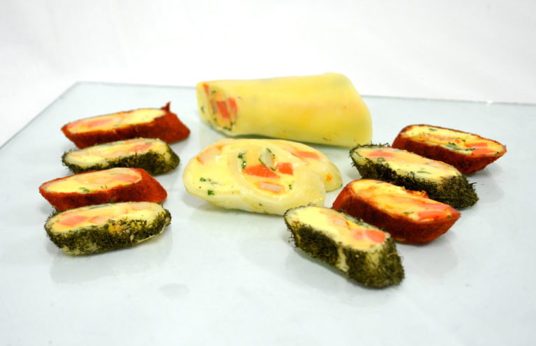 Technologický postup: Syr Eidam dáme do mikroténového vrecúška a pomaly zahrievame (voda nesmie variť) a syr roztopíme. Potrieme podstavec (dosku) olejom a za horúca valčekom rozvaľkáme na tenký plát. Po vychladnutí potrieme syrovou penou, pridáme dekoratívne prvky z červenej papriky, olív, pažítky a zrolujeme. Po vychladnutí naporcujeme.