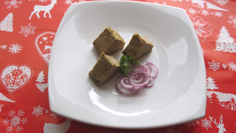 Technologický postup: Umytú a očistenú pečeň zomelieme, pridáme olej alebo tuk, smotanu, vajcia, vegetu, štipku soli a dôkladne elektrickým šľahačom vyšľaháme. Nalejeme do chlebíčkovej formy s nepriľnavým povrchom alebo ju vystelieme mastným papierom. Pečieme v rúre predhriatej na 180 °C, kým nie je paštéta upečená.