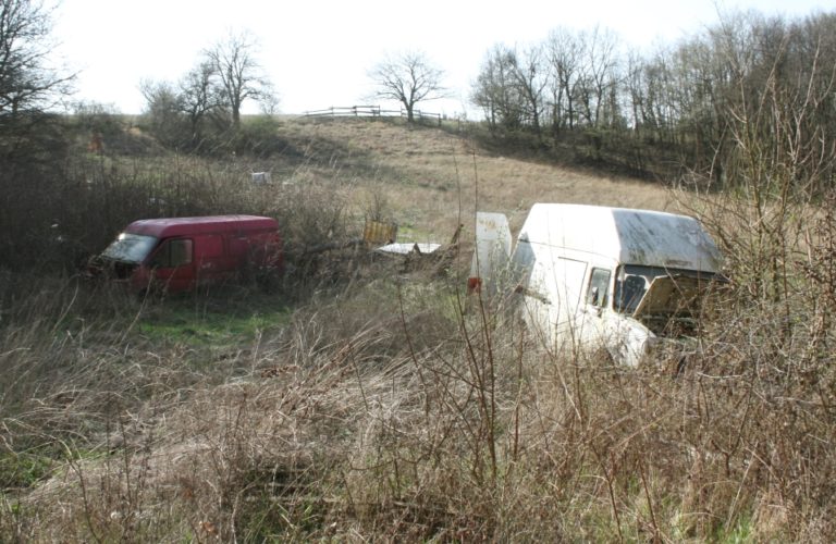 Pod starým ovocným sadom na konci dediny pri lese je pozemok, na ktorom nájdete dve staré dodávky bez kolies aj osobné auto s prívesným vozíkom. Sú tu obrovské plastové asi päťdesiat litrové fľaše od oleja, pneumatiky, betónové skruže, chladiace zariadene, veľký čln aj s veslom, mreže, skládky dreva, kovu a plastov rôzneho druhu.