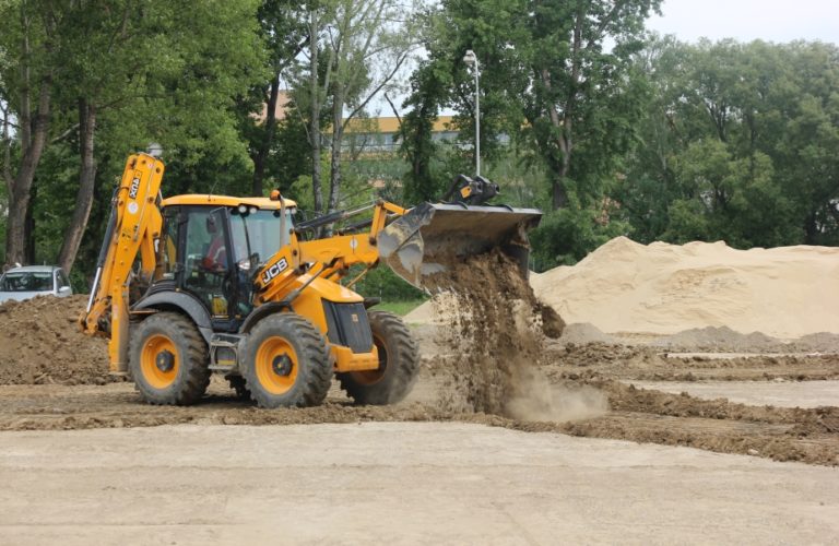 Na budúcu pláž by mali naviezť 1000 až 1200 ton bieleho piesku. Mokrý terén spôsobuje, že ho mechanizmy nemôžu rozhŕňať. Plocha budúceho aquaparku sa rozkladá pri zimnom štadióne na približne 13 500 metrov štvorcových.