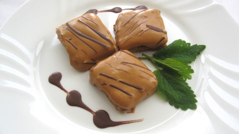 Poleva: 100 g čokoládová poleva, orechy na zdobenie