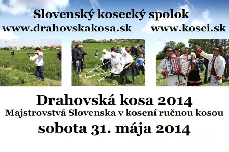 Slovenský kosecký spolok Vás pozýva na Majstrovstvá Slovenska v kosení ručnou kosou. Súťaž sa uskutoční 31.mája v Drahovciach.
