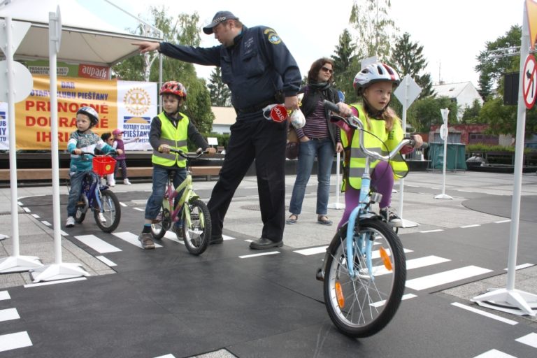 Pri príležitosti Medzinárodného dňa detí na Námestí slobody v Piešťanoch rozostavili príslušníci mestskej polície detské dopravné ihrisko. V sobotu 31. mája sa na ploche 280 metrov štvorcových učili desiatky detí pod dohľadom mužov zákona, ako sa správne jazdí v okružnej križovatke, kedy majú prednosť chodci a ktorú dopravnú značku treba rešpektovať.