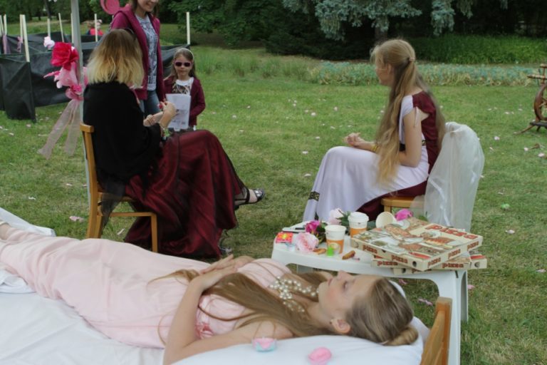 Dopoludnia ich bolo v parku tak veľa, že na rozprávky museli čakať v dlhočiznom rade. Originálne nápady im opäť pripravili dobrovoľníci z Piešťan i okolia. Deti dostali mapku, podľa ktorej putovali parkom od kráľovstva ku kráľovstvu. Dotykom ruky zobúdzali Šípkovú Ruženku. Do sieťok vo fontáne U vodníka chytali ryby a kačičky. V dedine zbojníka Jurošíka sa mohli pohrabať v truhlici plnej zlatých dukátov, ale ešte predtým pomáhali s hrabaním sena a inými dôležitými farmárskymi prácami. V kráľovstve kráľa Miroslava sadili deti hrášok, ktorý tlačil Pyšnú princeznú, v rozprávočke O kozliatkach ich vítali naozajstné živé kozičky.