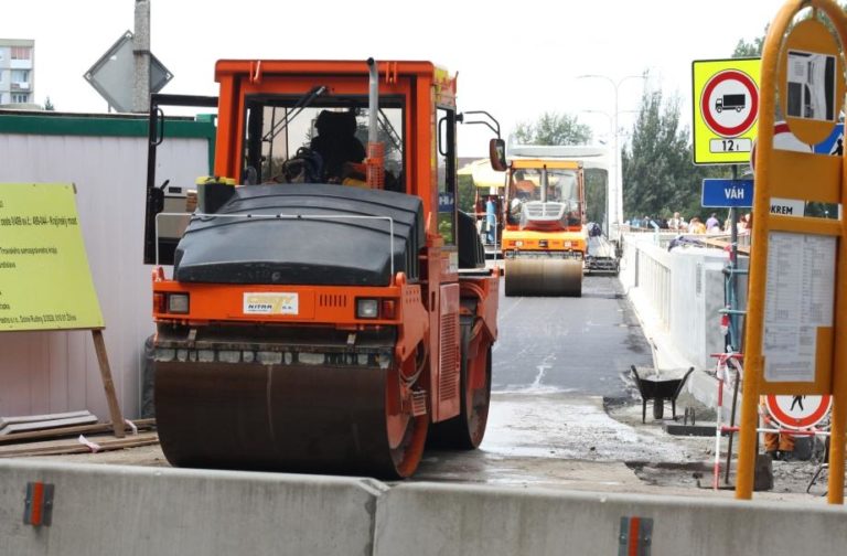 Správa a údržba ciest Trnavského samosprávneho kraja opätovne potvrdzuje, že práce postupujú podľa časového harmonogramu a ten dodrží aj vo finiši. Stavbu sme navštívili v čase uzávierky Piešťanského týždňa v pondelok 25. augusta krátko popoludní. Zo smeru ľavého brehu Váhu postupovala po moste stavebná technika a na povrch vozovky kládla asfalt.