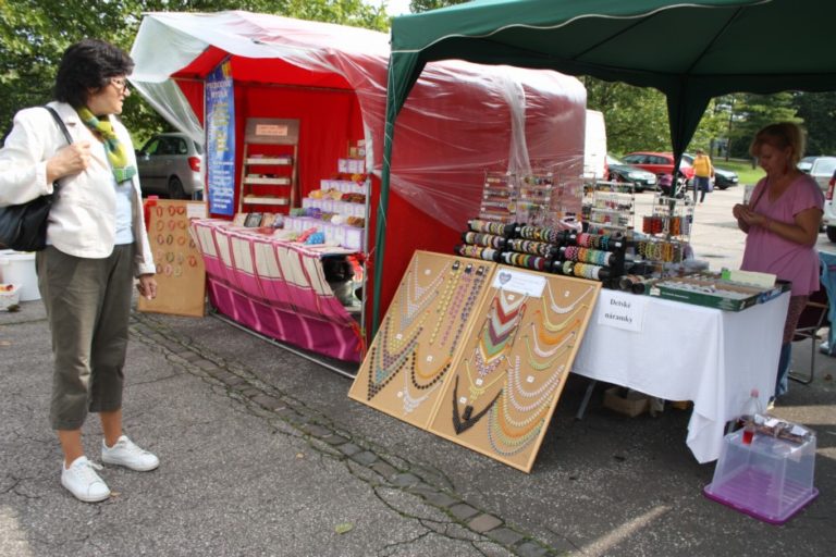Kupovali si cukrovinky, šperky, výrobky z kože, bylinky aj domáce likéry, prírodnú kozmetiku, užívali si špeciálnu masáž a dievčatká si vyrábali postavičky z textílií. Vraj to mali byť chlapi. „Dnes tu svoje výrobky, ktoré doma vytvorila, predáva aj naša vnučka Sofia spolu s kamarátkou Katkou,“ povedala nám stará mama Jolka Tuchscherová z Piešťan. Dievčence vyrobili okrem rôznych šperkov aj prepletané levanduľové šišky.