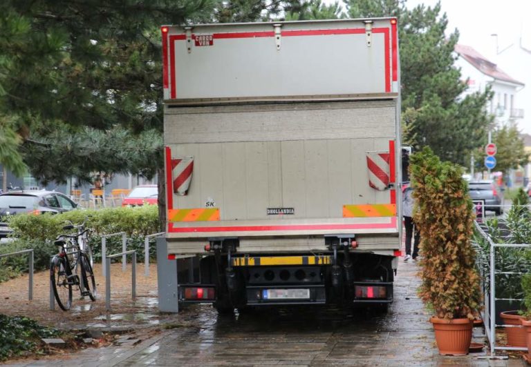Zreteľne vyjazdená koľaj a rozpadávajúci sa okraj chodníka sa nachádza oproti Auparku. Počas našej prítomnosti sme za štvrťhodinu narátali štyri nákladné autá, pravdepodobne zásobovacie, jazdiace po chodníku medzi chodcami smerujúce do blízkej obchodnej prevádzky.