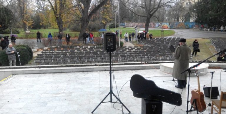 Na poslednú chvíľu sa tak riešilo náhradné miesto. Voľba padla na Hudobný pavilón v mestskom parku, no presťahovanie osláv 25. výročia Nežnej revolúcie nikto neavizoval. Zrejme i z toho dôvodu sa pred pódiom pod dáždnikmi krčilo len zopár ľudí. „I táto situácia je obrazom dnešnej doby. Jasne sa ukázalo, čo dnes dostalo v Piešťanoch pred pripomienkou sedemnásteho novembra prednosť,“ povedal pre Piešťanský týždeň hudobný hosť Marián Geišberg.