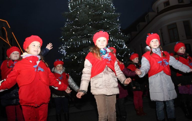 S kolekciou vianočných tancov a hudobných skladieb sa publiku zloženému prevažne z najmenších divákov a ich rodičov predstavili žiaci Základnej umeleckej školy v Piešťanoch. O kúsok ďalej piekol novozvolený poslanec Michal Fiala zemiakové placky na priedomí slovenského domčeka, ktorý tam vyrástol takpovediac z večera do rána. O pár desiatok metrov čapovali v drevenom stánku vianočný punč, medovinu a iné dobroty.
