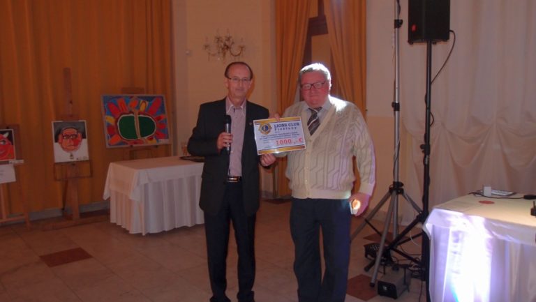Na štvrtom ročníku spoločenského podujatia Lions Halali odovzdal prezident Lions Clubu Miloš Sebedínsky symbolický šek v hodnote tisíc eur predsedovi Charity sociálnej starostlivosti a služieb pre zrakovo postihnutých občanov Piešťany, Jánovi Pastorekovi.