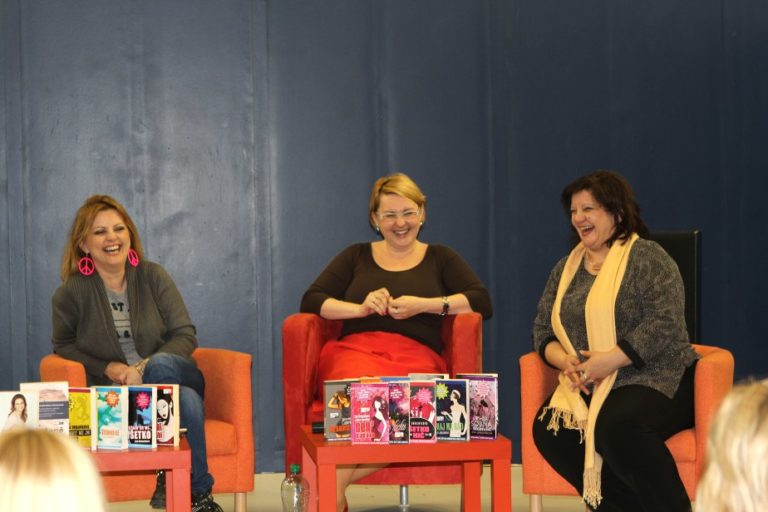 Evita hneď v úvode požiadala dámy o láskavosť, aby si nevšímali, keď bude odosielať esemesky alebo telefonovať, pretože jej syn ostal doma sám. A chlapi, či už malí, alebo veľkí, sú bez žien doma stratení. Reč bola otočená správnym smerom. Trio spisovateliek svorne priznalo, že píšu romány pre ženy, hoci sú zväčša o chlapoch. „A obvykle v nich vyjdú ako hajzli,“ smiala sa E. Urbaníková.