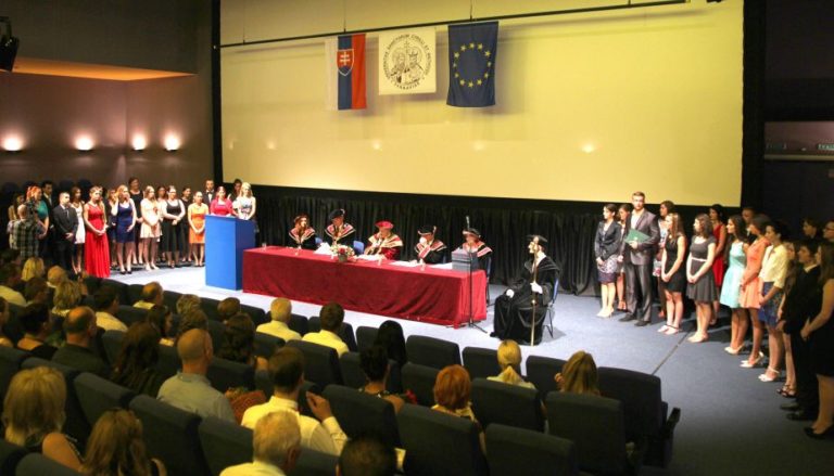 Po odznení národnej hymny, hymny Európskej únie a Univerzity sv. Cyrila a Metoda študenti sľúbili, že budú naďalej šíriť dobré meno svojej alma mater. Poďakovali za teoretické poznatky i praktické zručnosti, ktoré im škola dala. „Ste absolventmi na trhu práce veľmi hľadaného študijného programu, neukončili ste odbor s miestenkou na úrad práce,“ prihovoril sa absolventom riaditeľ inštitútu Juraj Štofko.