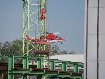 Ani záchranársky vrtuľník, ktorý pristál v priemyselnom areáli na Vrbovskej ulici v Piešťanoch pri diaľnici už žiaľ nestihol pomôcť zachrániť…