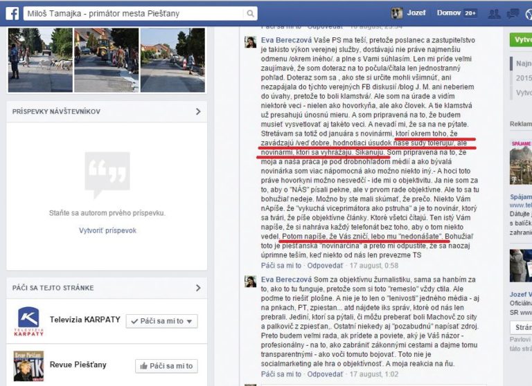 O čo primátor požiadal, to aj prispievatelia urobili a so svojimi skúsenosťami sa zdôverili. Našiel sa aj jeden kritický hlas. Na primátorovu stránku napísal: „Ale nezabudnite si to olajkovať všetkými stránkami, ktoré ako mesto spravujete, bude to vyzerať supersky!“ a uviedol aj zoznam stránok, podľa jeho názoru spravovaných E. Bereczovou o.i. na to, aby pravidelne primátorove príspevky označovala, že sa jej páčia. Tento malý náznak kritiky nenechal hovorkyňu mestského úradu chladnú a s „neželaným“ prispievateľom rozvinula prudkú výmenu názorov.