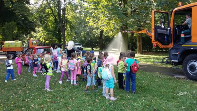 Deti zaujalo kosenie na rôznych kosačkách, najmä však na štvorkolesovej, ovládanej na diaľku. So záujmom si prezreli traktor s rukou slúžiaci na nakladanie pokosenej zelene a jej prevoz do kompostárne. Pilčík im predviedol ošetrovanie stromov z vysokozdvižnej plošiny. Drobci sa zabávali pri polievacom aute na čistenie komunikácií s veľkou cisternou. Piešťanskí záhradníci im na záver darovali rastlinu a deti ju samy zasadili.