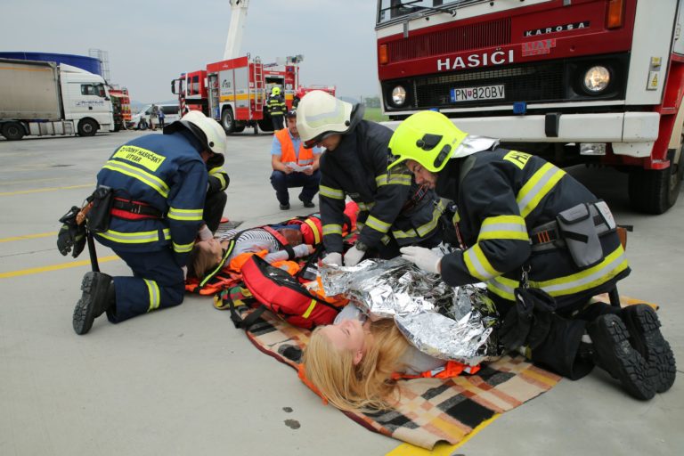 Likvidáciu fiktívneho požiaru a záchranu osôb v logistickom centre si šiesti vrbovskí dobrovoľní hasiči vyskúšali s ôsmimi profesionálnymi kolegami vo štvrtok 24. septembra krátko popoludní. Kým profesionáli zasahovali v budove priemyselného objektu a nacvičovali aj likvidáciu požiaru z vysokozdvižnej plošiny, Vrbovčania budovali hniezdo záchrany, kde poskytovali predlekársku starostlivosť zraneným civilom. „Z horiaceho objektu v dýchacích prístrojoch vyviedli dve osoby, imobilného človeka na nosidlách. Sťažovali sa na zranenia dolných končatín. Urobili sme fixáciu a poskytli prvú pomoc. V tejto fáze by ich prevzali zdravotní záchranári,“ vysvetlil dobrovoľný hasič Filip Gono. Spoluprácu si pochvaľoval i riaditeľ Okresného riaditeľstva Hasičského a záchranného zboru v Piešťanoch Peter Galbo: „Každé cvičenie preverí, čo nás čaká v reálnej situácii. Spolupráca s dobrovoľníkmi je nevyhnutná. Ich pripravenosť, ochota pomôcť, ale aj materiálna vybavenosť sa rok od roka zlepšuje. Vrbovských radíme k lepším z Piešťanského okresu.“ Asi po hodine hasiči cvičenie ukončili. P. Galbo našiel drobné chybičky, no takéto nácviky sú práve preto, aby sa odstránili.