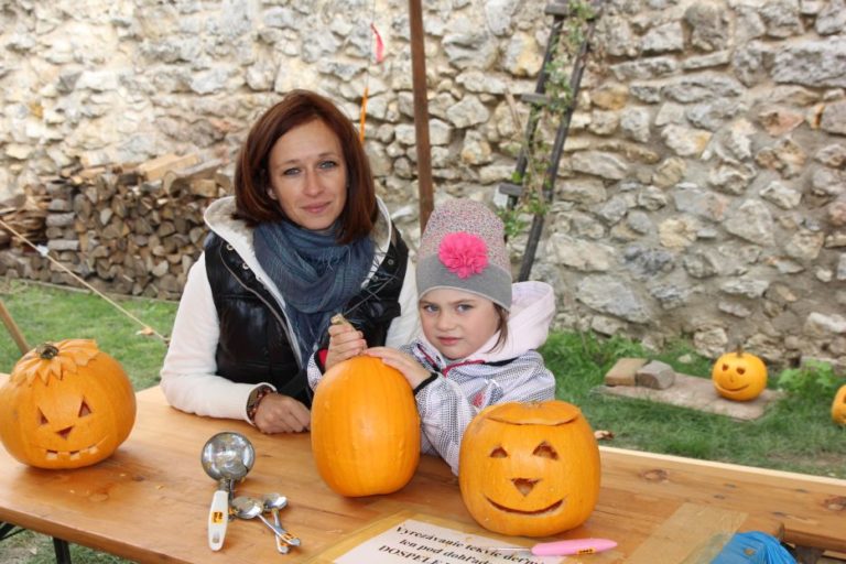 Organizátori pre návštevníkov pripravili až 300 tekvíc, k tomu niekoľko nožíkov. „Podujatie je zamerané pre deti, mohli si vyrezať tekvicu, namaľovať na ňu obrázky,“ povedala Miriama Šiveňová, asistentka manažéra hradu. Malí i veľkí sedeli v laviciach a trpezlivo kreslili na oranžové hlavy obrázky. Poctivo vydlabávali semienka a zamyslene obrezávali nožíkom predkreslené tváre.