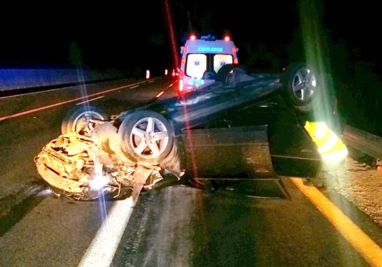 Neďaleko Piešťan vodič zrejme v mikrospánku zozadu narazil do VW Sharan. Napriek zdemolovaným autám a montážnikom prevráteným na strechu sa nič vážnejšie nikomu nestalo. Hasiči vykonali na oboch vozidlách protipožiarne opatrenia. Z diaľnice autá odviezla odťahová služba.