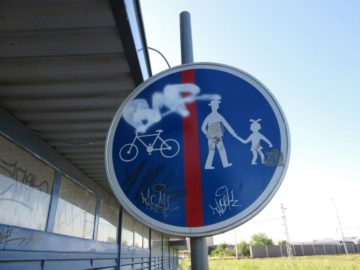 Mylné značenie v podchode pod železničnou traťou na Vrbovskej ceste v Piešťanoch stále pretrváva. Zvislé odporuje vodorovnému, ešte v lete…
