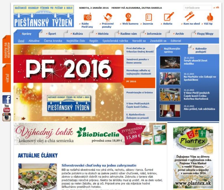 Piešťanský týždeň vstupuje do dvadsiateho šiesteho roka svojej existencie, jeho mladší brat – webstránka www.piestanskydennik.sk – do deviateho. Takže vaše „malé veľké noviny“ si môžete čítať nielen vytlačené na papieri, ale tiež na monitore počítača či displeji smartfónu. Od novembra sme po dlhšej odmlke aj na YouTube – najväčšom svetovom systéme na zdieľanie filmových súborov na internete a Instagrame.