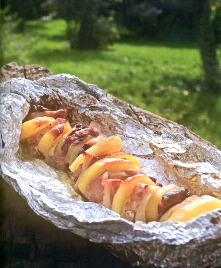 Prichystáme si alobal, odtrhneme asi 50-centimetrový pás a začneme ukladať do radu mäso, cibuľu, slaninu, zemiaky. Prvý kúsok mäsa si o niečo oprieme alebo pridržíme, aby nespadol a postupne striedame suroviny. Keď urobíme dlhý pás, zabalíme ho do alobalu. Suroviny vystačia asi na štyri rolky a ak zostanú zemiaky, cibuľa alebo aj slanina, zabalíme ich a stiahneme do batôžka. Rozhrabneme už nie príliš žeravú pahrebu, poukladáme vedľa seba a prikryjeme uhlíkmi. Asi o hodinu vyskúšame jednu rolku, či je hotová – ak áno, všetky rozbalíme na plechu alebo drevenom stole – niet lepšieho jedla v prírode na ohni.