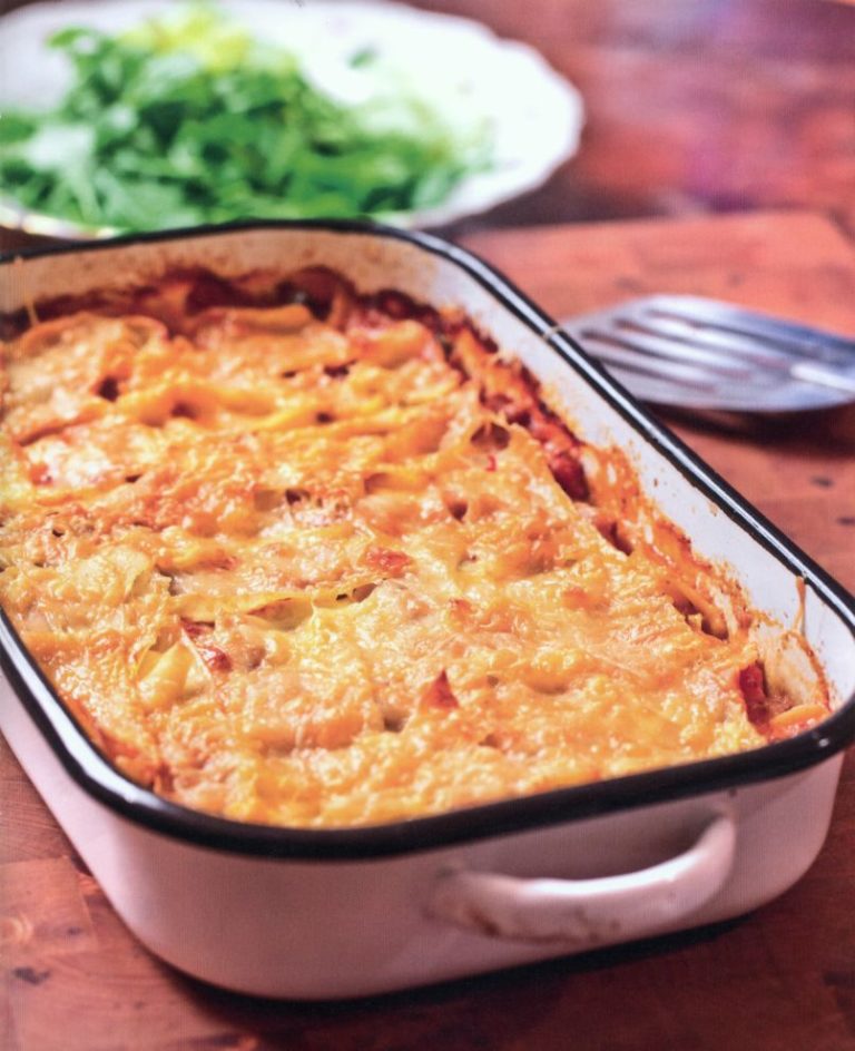 Vymastím a vysypem pekáč a vrstvím: lazane, mäsovú omáčku, paradajkovú omáčku, bešamel, mozzarellu a dám upiecť. Pečiem pomaly odokryté pri 170 °C asi hodinu.