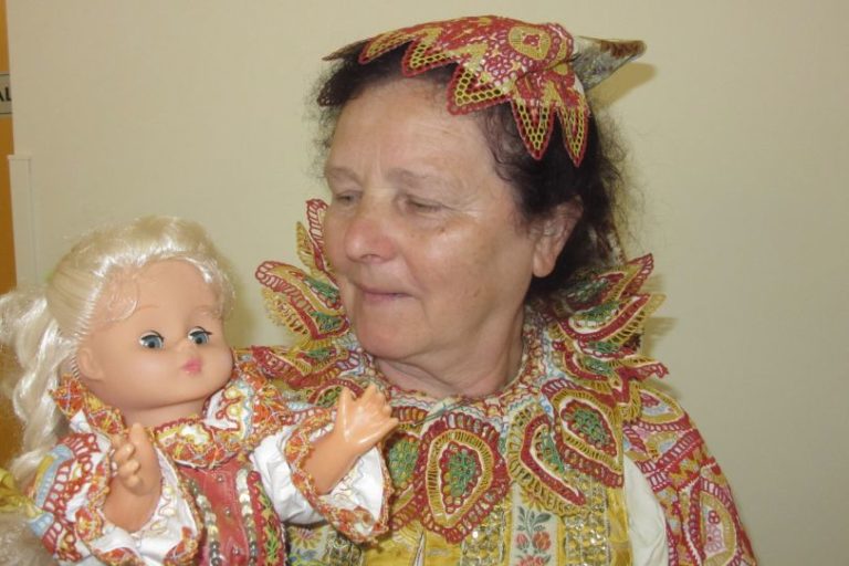 Náš región okrem iných tvorkýň zastupuje i pobedimská čipkárka Mária Mizeráková. Vystavuje dievča a mládenca v dobovom odeve z Pobedima. „Najskôr som upaličkovala ‘kriezel‘, čiže ozdobný golier, potom rukávce a čipky na sukni. Dierovanú výšivku som si dala vyšiť. Odev mládenca je jednoduchší, lebo muži nechodili takí vyparádení. Pozostáva z modrého kabátika a nohavíc, na kabátci je dierovaná výšivka v tvare osmičiek,“ uviedla M. Mizeráková. Výstavu sprevádzali spevmi z piešťanského regiónu vo sviatočných odevoch vyparádené členky speváckej skupiny Povoja z Piešťan.