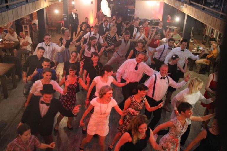 Milovníci tanca prichádzali ustrojení v dobovom oblečení. Viacerí už priebeh večera dobre poznali, pretože naučiť sa swing prišli po tretí raz. „Rozbieha sa to zatiaľ dobre,“ začal rozprávanie lektor Ján Kubriczký. Doplnila ho tanečná partnerka Stela Koščíková: „Ľudí to baví, radi si sem prídu zatancovať a niečo nové sa naučiť. Myslím si, že tu máme dobré prostredie a dobrý kolektív, takže čoraz radšej sem chodia s celými rodinami.“