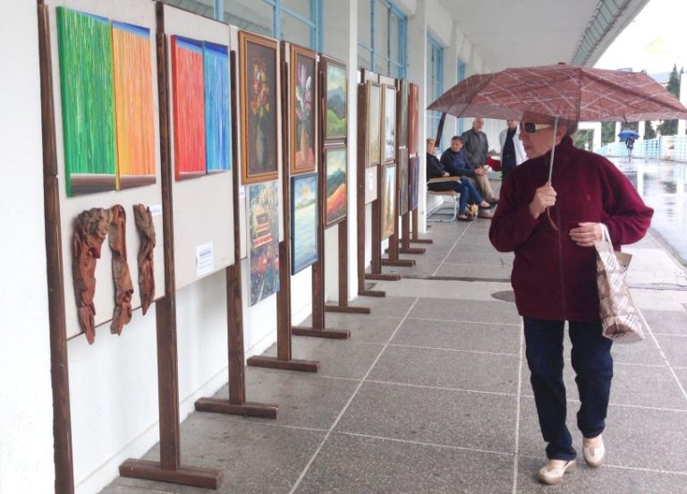 Tradičnú výstavu umeleckých diel na Kolonádovom moste v Piešťanoch si návštevníci užili aj napriek nevôli počasia. V sobotu 17. júla pri prechádzaní ponad Váh obdivovali obrazy siedmich domácich umelcov. Umenie na moste s podtitulom Výstava obrazov na jeden krok od diváka rozžiarila daždivé centrum, úsmev na tvári pomáhala vyčariť aj hudobná skupina EMI.
