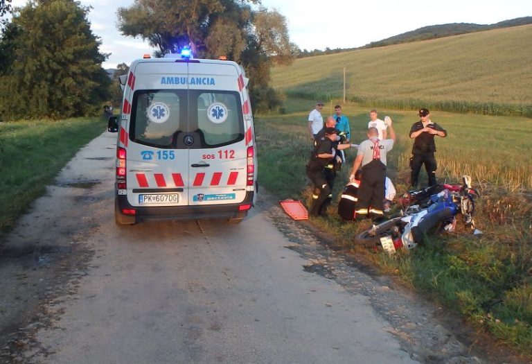 V sobotu 6. augusta si vyšli na jazdu na motorke dvaja obyvatelia Moravian. Manželia jazdili bez prilieb, havarovali a obaja sa zranili. Podľa polície sa 36-ročný muž dostatočne nevenoval riadeniu, vyšiel mimo cesty vpravo a na tráve motocykel neudržal a prevrátil sa. Hasiči poskytli manželom prvú predlekársku pomoc, potom ich prenechali lekárovi. Vážne zraneného vodiča napokon prevážal na ošetrenie vrtuľník. Spolujazdkyňu odviezla záchranka.