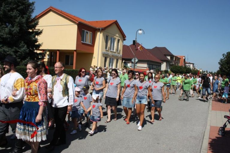 Reprezentačné oslavy sa začali v sobotu 27. augusta slávnostným pochodom za zvuku dychovej hudby od hasičského a poľovníckeho domu k obecnému úradu. V úvode sprievodu kráčali do miestnych ľudových krojov odetí mladí ľudia, dievčatá niesli erb obce. Za nimi kráčali skupiny spoločensky aktívnych obyvateľov, ktorí sú združení v rôznych organizáciách a spolkoch. Každý z nich bolo možné odlíšiť podľa odevov a príslušných znakov na tričkách či šerpách. Kráčali tam poľovníci, hasiči, seniori, mamičky s deťmi, futbalisti či šachisti.