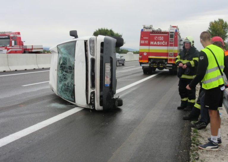 Pondelkový dážď, šmykľavá cesta a chvíľková nepozornosť mladého vodiča zapríčinili, že na diaľnici v smere z Piešťan na Hornú Stredu sa prevrátila biela dodávka s košickou poznávacou značkou. Košičan dostal šmyk, narazil do zvodidiel a so svojím spolujazdcom, s ktorým sa mal striedať za volantom, lebo na cesty vyrazili po polnoci, sa prevrátil nabok. Auto síce rozmlátil, no mužom sa nič vážne nestalo.