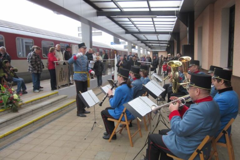 „Je to naozaj romantická jazda vlakom – teplé pivo a studené párky,“ žartoval Stanislav Slížik. Na stanici hostí vítal do dobových kostýmov odetý Cisársky a kráľovský dychový komorný orchester. Z vlakov, ktoré v to dopoludnie prechádzali Piešťanmi, sa vykláňali zvedavci. „Ešte nikdy som nezažil takéto vítanie na stanici,“ povedal jeden z cestujúcich, ktorý si šiel zo zvedavosti pozrieť aj výstavu historických fotografií inštalovanú v čakárni. Viaceré snímky dokumentovali cestovný ruch na malej – kvetmi obsypanej stanici, ktorá patrila medzi najkrajšie na Slovensku. Jedna z fotiek zachytávala aj starú parnú lokomotívu, ktorej našinci hovorili Vrbovská Kača alebo Vrbovské Čango. Lokomotíva vždy dymila a z komína jej vyletovali sadze, takže ľudia žijúci pri stanici mali na bielizni škvrny, ktoré sa len ťažko odstraňovali. S Čangom mávali dočinenia aj hasiči, najmä v júli, keď zrelo obilie, pretože iskry vyletujúce spod kolies občas zapálili zrno na klasoch i strniská. Preto v letných mesiacoch bývali na poliach hliadky, ktoré dávali na úrodu pozor.