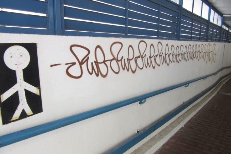 Vynaliezavosť kresličov, zdá sa, nemá hranice, sú tam nielen oplzlé, ale miestami aj vtipné záležitosti. Napríklad od piktogramu panáčika, ktorý ukazuje chodcom správny smer, ide zväčšujúci sa grafický prejav človeka, ktorý zjavne miluje oblé tvary a nerád prerušuje čiaru. Okrem toho panáčika ktosi poďobal červenou farbou, takže nielen Piešťanci bojujú s chrípkou, ale aj pandrláčik s „ovčími kiahňami“ či „osýpkami“. Na opačnej strane je zasa pri piktograme bicykla namaľovaná skratka LDST.