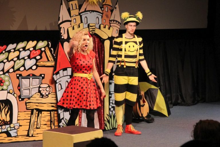 Deti spolu s rodičmi zaplnili sálu kina a netrpezlivo očakávali začiatok predstavenia plného pesničiek a vtipov pre najmenších. Herci Divadla Maska, lienka Tanculienka alias Petra Ševčíková a čmeľko Smejko, pod ktorým sa skrýval Marek Kováč, deti zabávali približne hodinu. Interaktívne ich zapájali do deja, spoločne si spievali pesničky, ale aj ich naučili, ako sa viažu šnúrky, skladá lietadielko a lodička alebo ako si urobiť najlacnejšie divadlo na svete. Deti si s nimi spoločne zaspievali, tie odvážnejšie zišli až k pódiu a aj si zatancovali. Po skončení sa protagonisti s malými fanúšikmi pofotili a odovzdali autogramy na pamiatku.