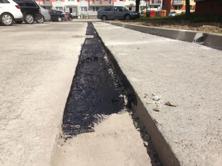 Kým na Teplickej ulici sa diery v asfalte aspoň snažia riešiť, nové parkovisko vo vnútrobloku Ulice A. Hlinku je v užívaní od konca decembra a dodnes sa na dieru medzi ním a starým asfaltom nik nezameral, akurát namiesto snehu do nej padajú časti zo stromov. Tieto „estetické“ chyby pritom mali byť odstránené hneď, ako to umožňovalo počasie.
