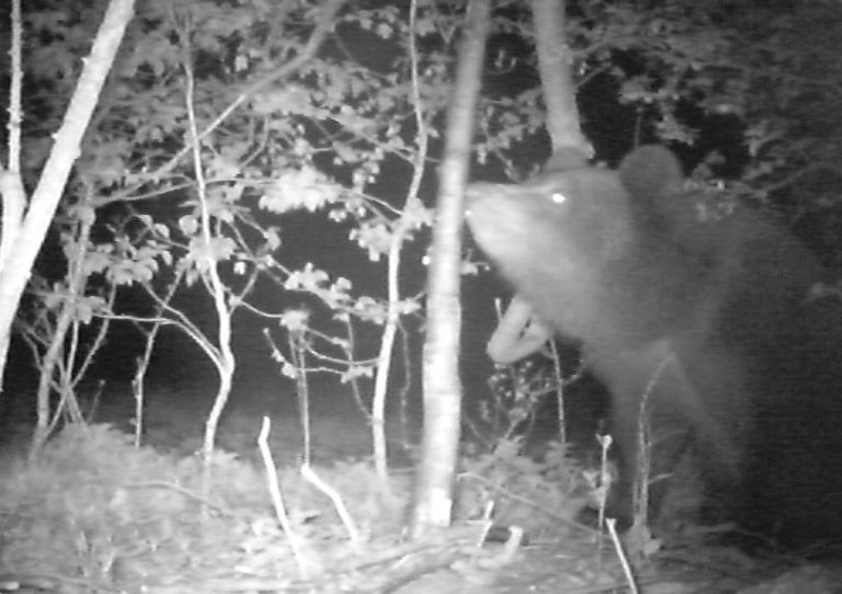 Medveďa v lesoch nad Piešťanmi zaregistroval včelár vďaka zničenému úľu. „Keď som sa k úľom blížil, zbadal som jeden rozlámaný. Najprv som si myslel, že to urobili vandali. Až po bližšom prezretí toho, čo z úľa ostalo, som objavil stopy zubov. Rámiky s plástmi boli rozhádzané a vyjedené,“ povedal pre Piešťanský týždeň majiteľ úľov Erik Ondrejka. Nebol však jediný, kto zaregistroval prítomnosť tejto šelmy v okolí kúpeľného mesta. Jej prítomnosť potvrdila i fotopasca, ktorú v lesoch Považského Inovca medzi Šalgovcami a Ardanovcami umiestnil poľovník. „Nuž, prekvapenie to naozaj bolo, keď sme prezerali, čo kamera zachytila. To, že na obraze bude medveď, som naozaj nečakal,“ opísal poľovník Miro Pavlíček. Podľa jeho slov to vraj nie je prvý prípad, keď sa táto šelma zatúlala až tak ďaleko od hlbokých karpatských lesov zo severu Slovenska do lokality Piešťan. „Asi pred štyrmi až piatimi rokmi medveďa videli aj neďaleko Hlohovca. Vtedy sa však nechcel fotiť,“ dodal s úsmevom poľovník.