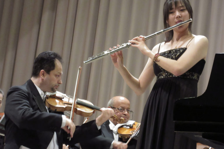 Publikum zvlášť ocenilo výkon mladučkej pianistky Erin Yu, ktorá technicky bravúrne zvládla náročný part prvej časti Koncertu pre klavír a orchester C dur op. 15 L. van Beethovena. Pôsobila prirodzene, milo a dievčensky krásne v bielych saténových šatách s výraznými štrasovými šperkami vo vlasoch i na opasku rafinovanej sukne.