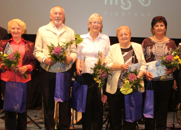 Pri príležitosti Mesiaca úcty k starším si v piešťanskom kine Fontána v utorok 10. októbra prevzali ocenenia i kytice vďaky za dlhoročnú aktívnu prácu v spoločenských a pacientských organizáciách piati najaktívnejší členovia.