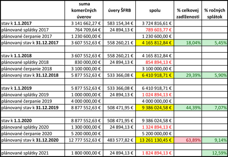 A v roku 2020 dlh mesta narastie až na hodnotu 13 261 130,45 eur. To je skoro 64 percentná zadlženosť mesta. Keďže hranica pred nútenou správou ministerstvom financií je zákonom ukotvená na päťdesiatich percentách, tak vedomé naplánovanie takéhoto hospodárenia je evidentne na hranici kriminálneho činu.